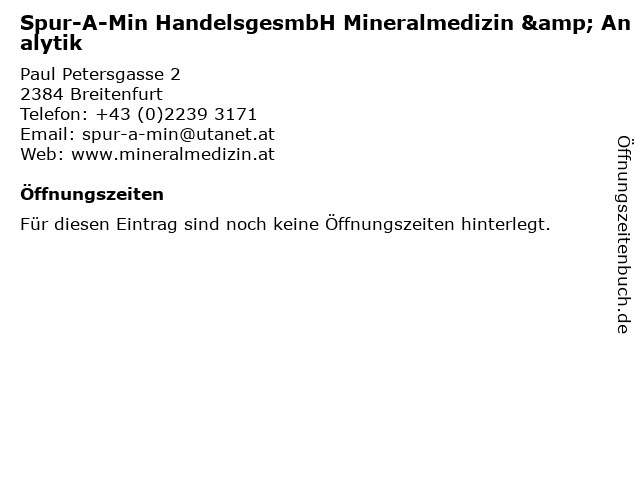 | Spur-A-Min HandelsgesmbH Mineralmedizin & Analytik anrufen | |