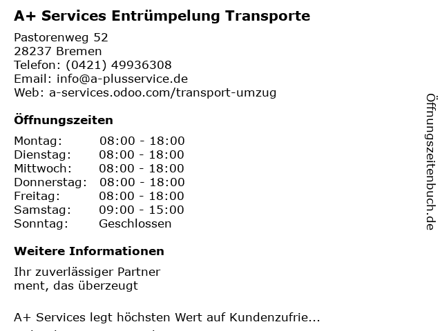 Branchen & Suchbegriffe zu A+ Services Entrümpelung Transporte:a+, entrümpelung, services, transporte |