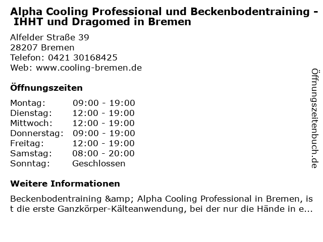 Branchen & Suchbegriffe zu Alpha Cooling Professional und Beckenbodentraining - IHHT und Dragomed in Bremen:alpha, beckenbodentraining, cooling, dragomed, ihht, professional |