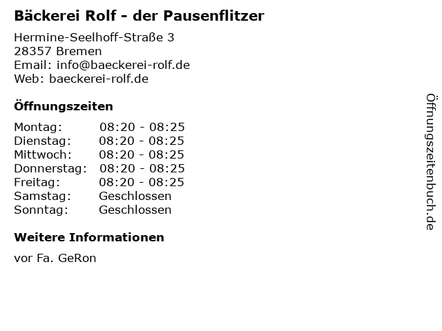 Öffnungszeiten Bäckerei Rolf - der Pausenflitzer in Bremen anzeigen