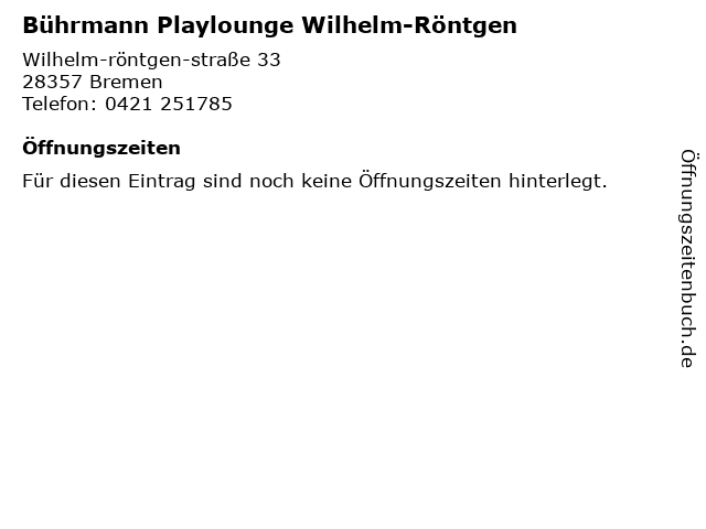 | Bührmann Playlounge Wilhelm-Röntgen anrufen | |