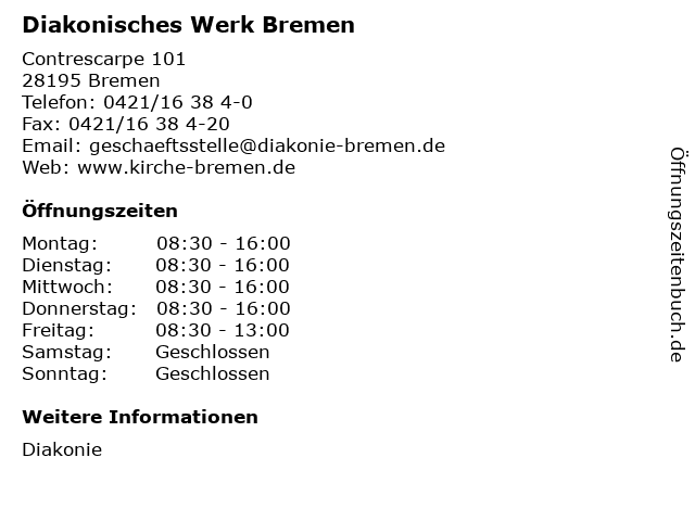 | Öffnungszeiten Diakonisches Werk Bremen in Bremen anzeigen | |