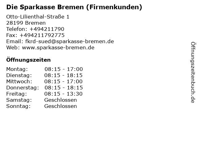 Die Sparkasse Bremen (Firmenkunden) anrufen | |