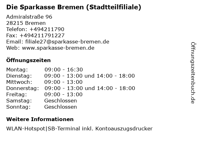 Branchen & Suchbegriffe zu Die Sparkasse Bremen (Stadtteilfiliale):sparkasse, stadtteilfiliale |