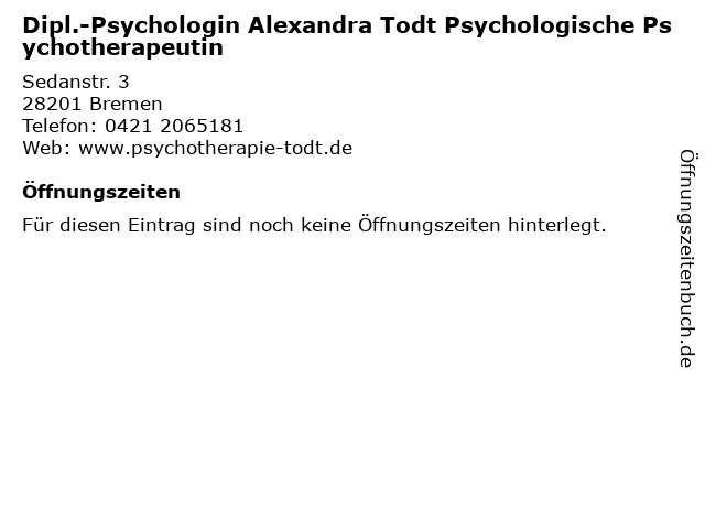 | Dipl.-Psychologin Alexandra Todt Psychologische Psychotherapeutin anrufen | |