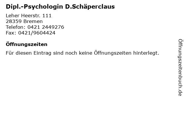| Dipl.-Psychologin D.Schäperclaus anrufen | |