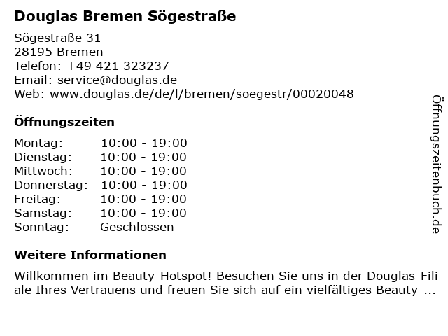 | Öffnungszeiten Douglas Bremen Sögestraße in Bremen anzeigen | |