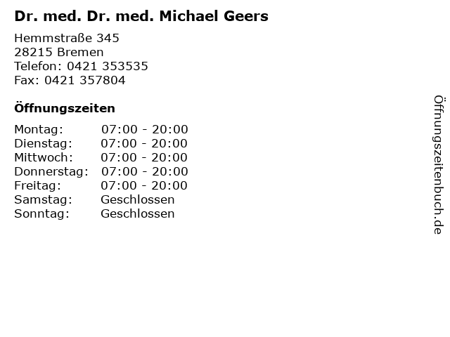 Branchen & Suchbegriffe zu Dr. med. Dr. med. Michael Geers:arzt, dr., geers, innere medizin, med., michael, sprechzeiten |