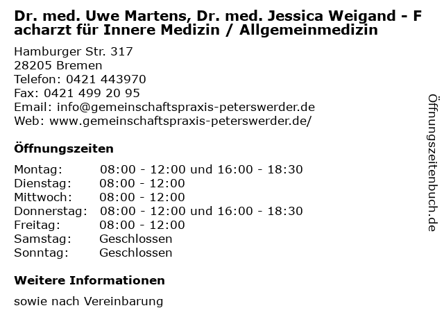 Branchen & Suchbegriffe zu Dr. med. Uwe Martens, Dr. med. Jessica Weigand - Facharzt für Innere Medizin / Allgemeinmedizin:allgemeinmedizin, dr., facharzt, hausarzt, innere, jessica, martens, med., medizin, uwe, weigand |