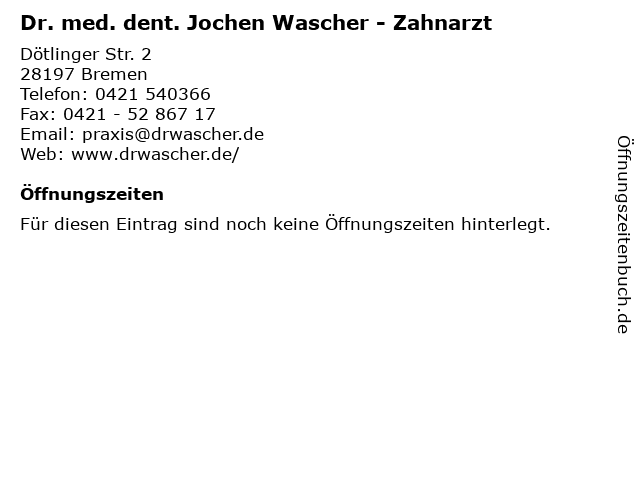 | Dr. med. dent. Jochen Wascher - Zahnarzt anrufen | |