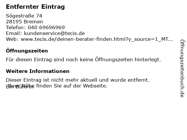 | Öffnungszeiten Entfernter Eintrag in Bremen anzeigen | |