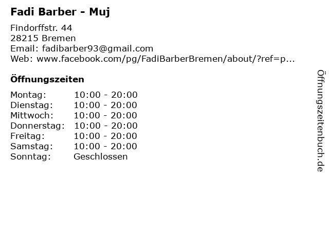| Öffnungszeiten Fadi Barber - Muj in Bremen anzeigen | |