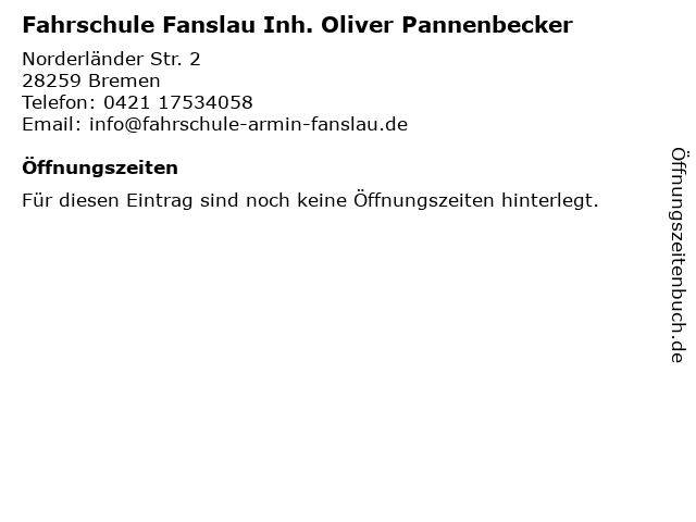| Fahrschule Fanslau Inh. Oliver Pannenbecker anrufen | |