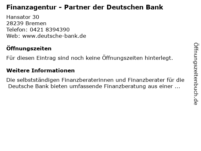 | Finanzagentur - Partner der Deutschen Bank anrufen | |