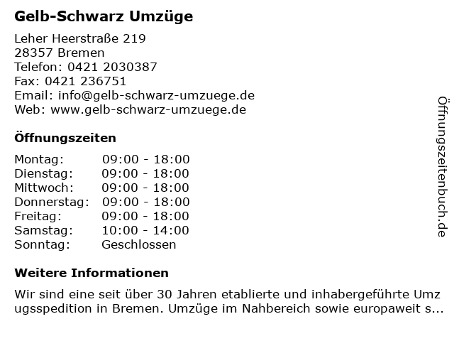| Öffnungszeiten Gelb-Schwarz Umzüge in Bremen anzeigen | |