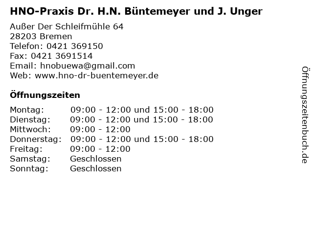 Branchen & Suchbegriffe zu HNO-Praxis Dr. H.N. Büntemeyer und J. Unger:büntemeyer, dr., h.n., hno, j., praxis, unger |