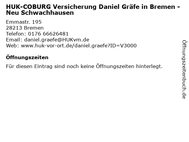 | HUK-COBURG Versicherung Daniel Gräfe in Bremen - Neu Schwachhausen anrufen | |