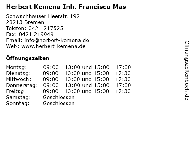 Branchen & Suchbegriffe zu Herbert Kemena Inh. Francisco Mas:francisco, herbert, kemena, mas |
