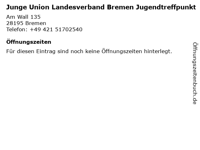 | Junge Union Landesverband Bremen Jugendtreffpunkt anrufen | |
