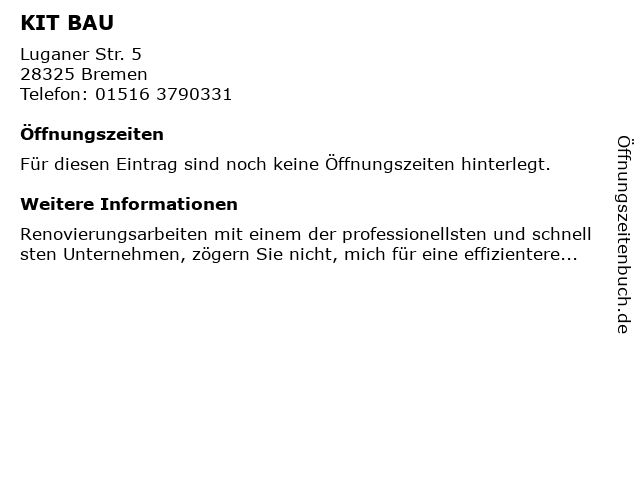 | Öffnungszeiten KIT BAU in Bremen anzeigen | |