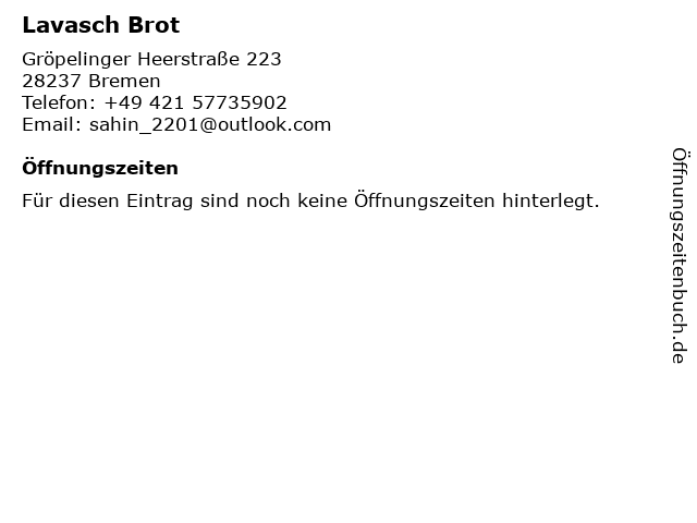 | Öffnungszeiten Lavasch Brot in Bremen anzeigen | |