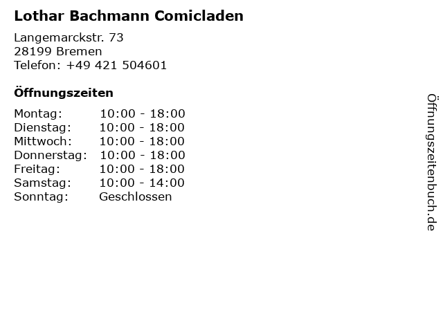 | Öffnungszeiten Lothar Bachmann Comicladen in Bremen anzeigen | |