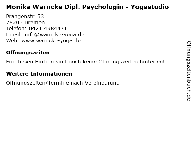 | Monika Warncke Dipl. Psychologin - Yogastudio anrufen | |