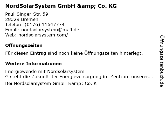 | NordSolarSystem GmbH & Co. KG anrufen | |