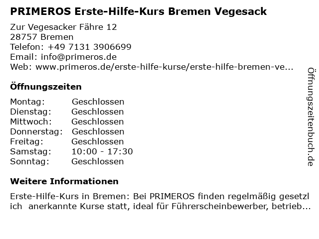 Branchen & Suchbegriffe zu PRIMEROS Erste-Hilfe-Kurs Bremen Vegesack:erste, erste hilfe am unfallort, erste hilfe kurs, erste-hilfe, erste-hilfe-kurs, führerschein sehtest, herz-lungen-wiederbelebung, herzinfarkt, hilfe, kurs, primeros, schlaganfall, stabile seitenlage, vegesack, verbandmaterial, weiterbildung |