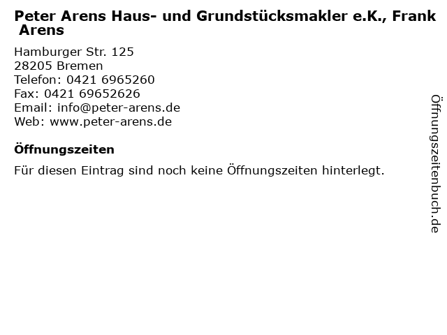 | Peter Arens Haus- und Grundstücksmakler e.K., Frank Arens anrufen | |
