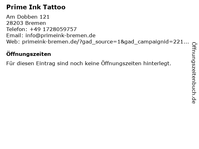 | Öffnungszeiten Prime Ink Tattoo in Bremen anzeigen | |