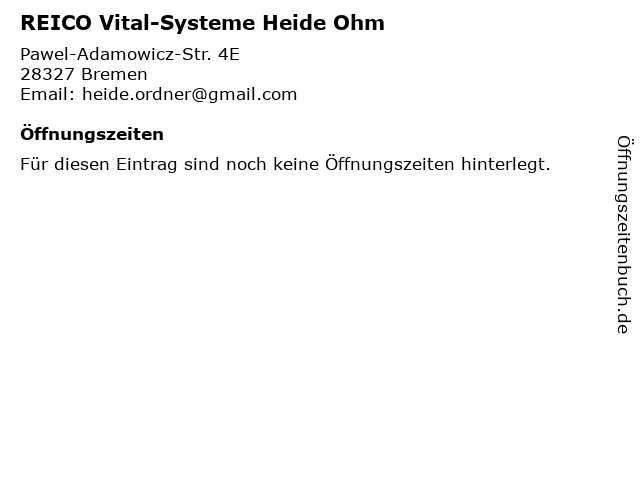 | Adresse REICO Vital-Systeme Heide Ohm in Bremen anzeigen |