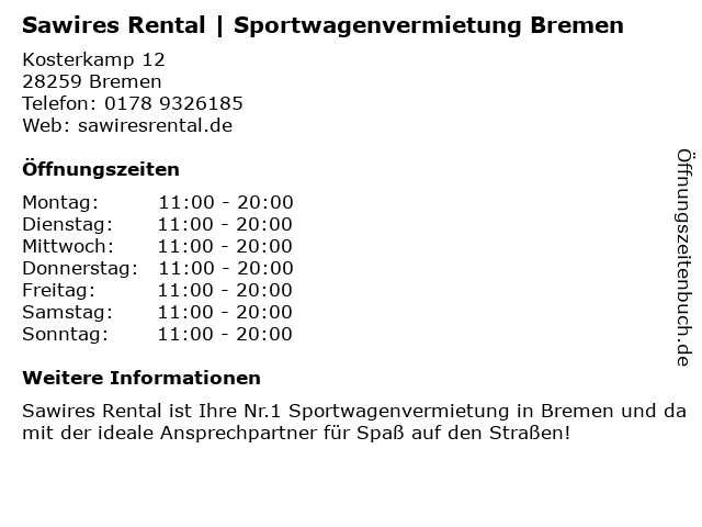 Branchen & Suchbegriffe zu Sawires Rental | Sportwagenvermietung Bremen:rental, sawires, sportwagenvermietung |