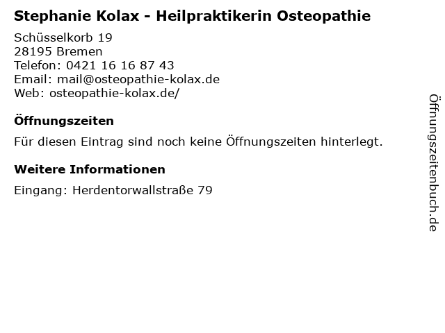 | Stephanie Kolax - Heilpraktikerin Osteopathie anrufen | |