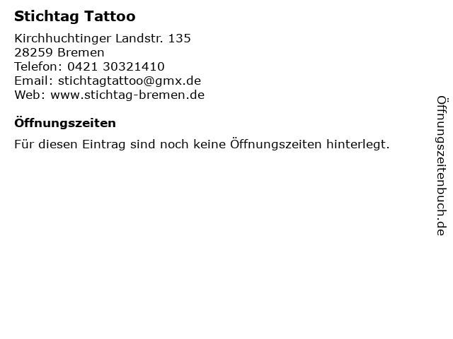 | Öffnungszeiten Stichtag Tattoo in Bremen anzeigen | |
