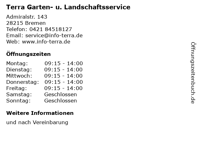 4 Terra Nova-Gesellsch. f. Baureifmachung und Bauträgerschaft mbH (Entfernung: 5,37 km) Luisental 36, 28359 Bremen 6 |