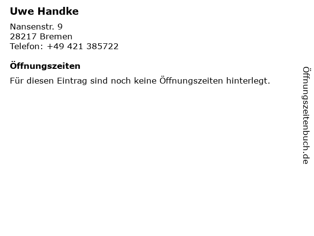 | Öffnungszeiten Uwe Handke in Bremen anzeigen | |