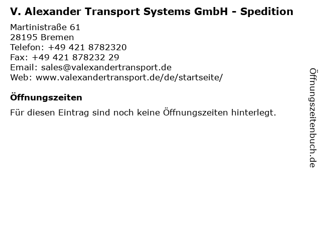 | V. Alexander Transport Systems GmbH - Spedition anrufen | |
