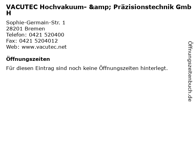 | VACUTEC Hochvakuum- & Präzisionstechnik GmbH anrufen | |