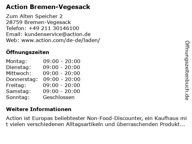 Branchen & Suchbegriffe zu Action Bremen-Vegesack:action, baumarkt, garten, haushalt, haustiere, hobby, küche, mode, multimedia, pflege, reisen, schule & büro, spielzeug, sport, vegesack, wohnen |
