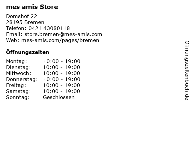 | Öffnungszeiten mes amis Store in Bremen anzeigen | |