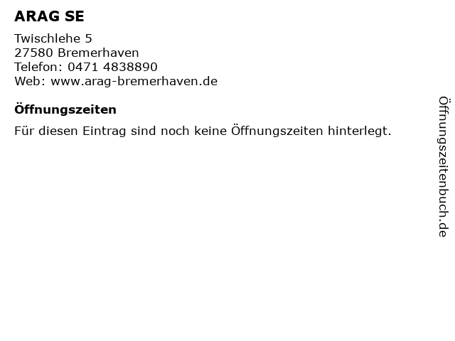 | Öffnungszeiten ARAG SE in Bremerhaven anzeigen | |