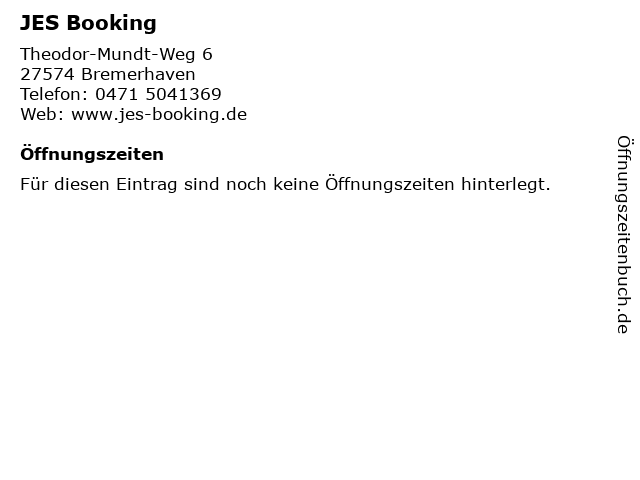 | Öffnungszeiten JES Booking in Bremerhaven anzeigen | |
