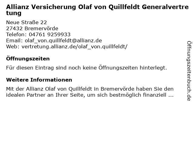 | Allianz Versicherung Olaf von Quillfeldt Generalvertretung anrufen | |