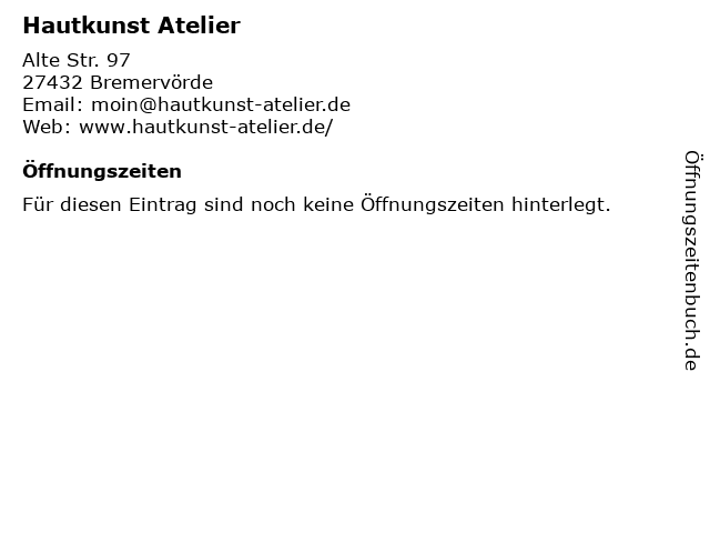 | Öffnungszeiten Hautkunst Atelier in Bremervörde anzeigen | |