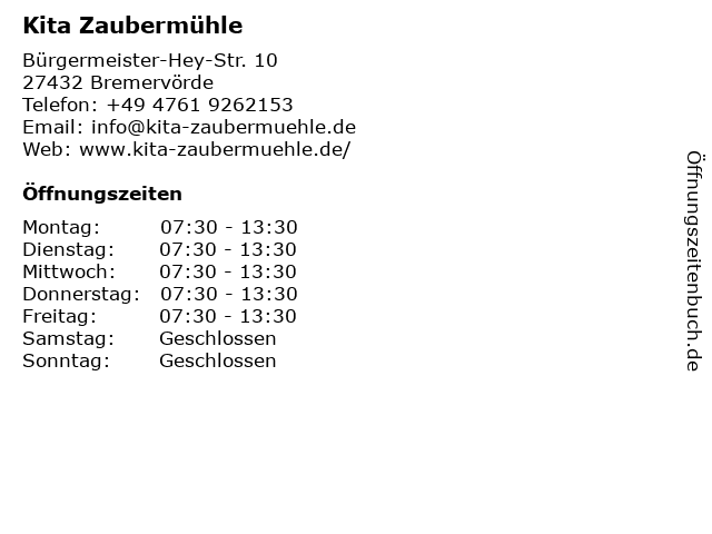 | Öffnungszeiten Kita Zaubermühle in Bremervörde anzeigen | |