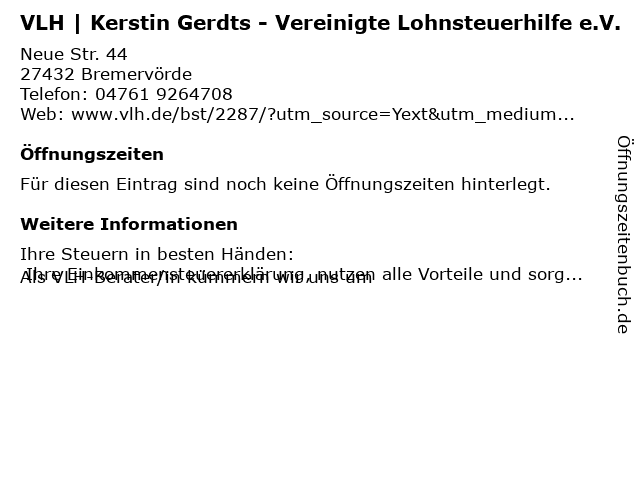 | VLH | Kerstin Gerdts - Vereinigte Lohnsteuerhilfe e.V. anrufen | |