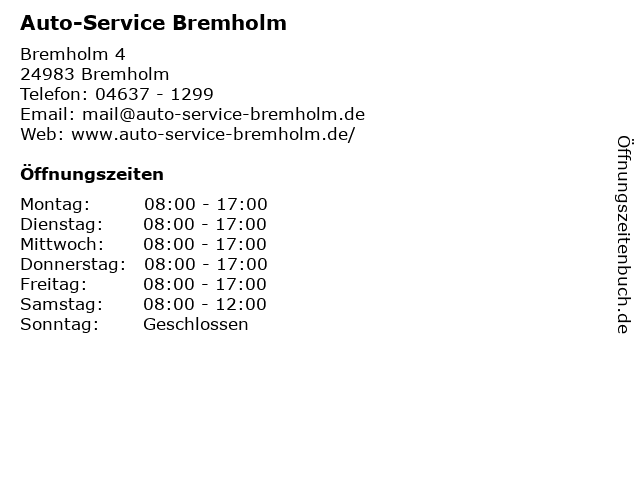 | Öffnungszeiten Auto-Service Bremholm in Bremholm anzeigen | |