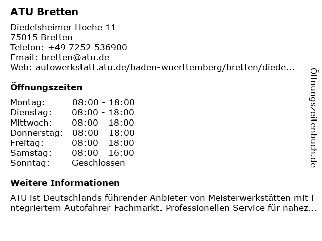 | Öffnungszeiten ATU Bretten in Bretten anzeigen | |