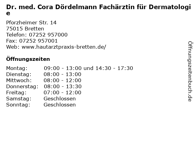 2 Dr. Eva-Maria Schwindenhammer - Fachärztin für Allgemeinmedizin / Psychotherapie (Entfernung: 7,58 km) Sternenfelser Str. 12, 75038 Oberderdingen 3 Andrea Maisenhölder Fachärztin f. Allgemeinmedizin (Entfernung: 7,75 km) Weinbrennerstr. 2/1, 75245 Neulingen 4 Andrea Apel Fachärztin für Kinder- und Jugendpsychiatrie (Entfernung: 9,77 km) Wörthstr. 8, 76646 Bruchsal 6 Dr. med. Patricia Neubauer - Fachärztin für Allgemeinmedizin (Entfernung: 16,01 km) Bahnhofstr. 2, 75172 Pforzheim |